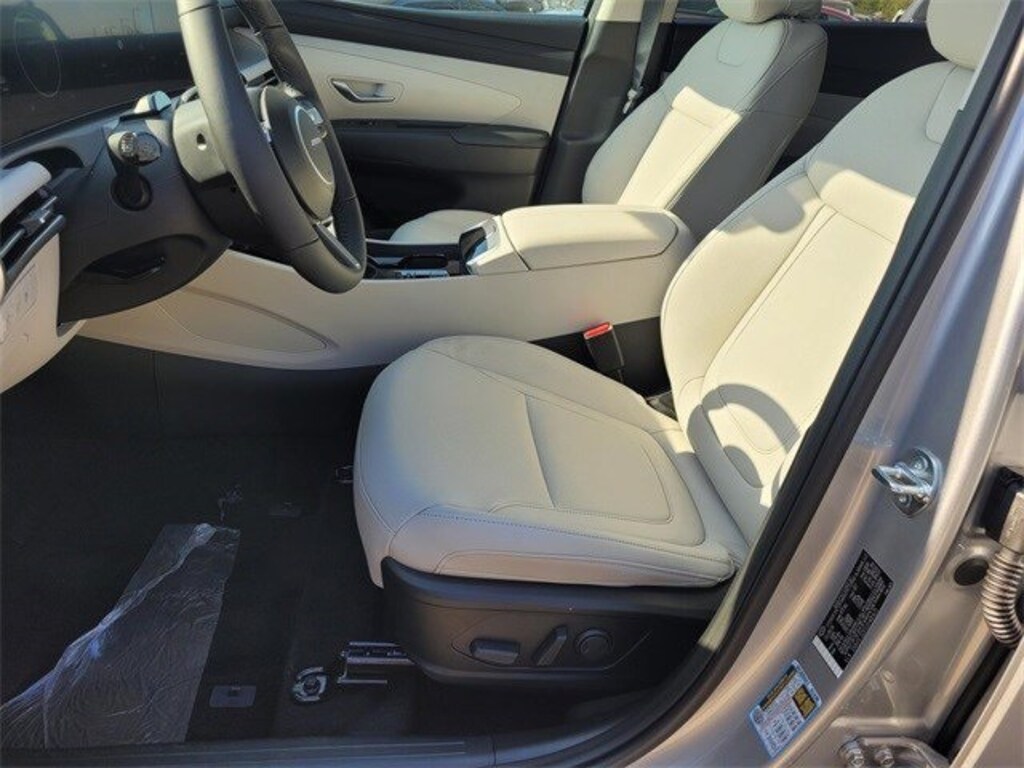 Shimmering Silver 2025 Hyundai Tucson SEL Convenience 2.5L I4 DGI DOHC 16V LEV3-SULEV30 187hp 8-Speed Automatic with SHIFTRONIC Gray Leather, ABS brakes, Active Cruise Control, Alloy wheels, Apple CarPlay & Android Auto, Electronic Stability Control, Front dual zone A/C, Heated door mirrors, Heated Front Bucket Seats, Heated front seats, Illuminated entry, Low tire pressure warning, Navigation System, Power Liftgate, Power moonroof, Remote keyless entry, Traction control.