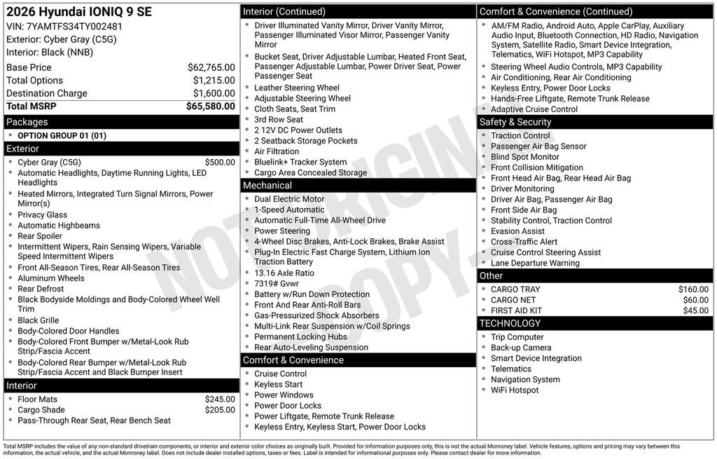 2026 Hyundai IONIQ 9 SEL 4dr SUV AWD (electric DD cyber gray and 2 tone light gray interior. ) This an early review having only 478 miles on it. Positives: *Quiet ride: Very hushed inside with little road noise, tire noise or any squeaks or rattles. Smooth over all road bumps w/o lateral or vertical bobbing as some professionals have reported. I did notice mine has 20' Kumho's vs 21s on higher trims that were reviewed by most pros. *Awesome drivetrain: Adaptive cruise is very precise and lane centering is steady with no weaving. It will even change lanes which I was surprised it did despite not being a hands off system. Aerodynamics are yielding an average of 3.2mi/kw since taking ownership. I drive 0-10 MPH over speed limits and using ECO mode or 1 pedal driving when alone but switch to none or level 1 when others in the car to increase smoothness. My wife prefers zero regen and it glides on so much that I sometimes wonder if I should let it stay that way. Normal and sport mode really boosts accelerator response and sport definitely tightens the steering response. *Luxury comfort: 1st row comfort outstanding for almost all body types. Super soft headrest is a welcome surprise. Kia EV9 has a mesh headrest equally soft and comfortable. I enjoy having some buttons for climate and media features but enjoy that the screen or voice commands can do just about anything the buttons do. EV9 has similar layout and was a close comparison. Tesla's all screen modality does not work for me but for others it is fantastic - to each their own. 2nd row bench again is what works for my family as we are numerous and have grown adult children. Foot rests in higher trims seem small and unlikely to allow full leg extension as it would squeeze legs against the set in front. and gimmicky except for small kids; mine are all adults owning their own cars. Sliding the seat a bit forward gives decent 3rd row space, but my wife and I typically keep 3rd row down for extra storage. *Other likes: Hidden rear wiper increases vision; Headlights shine nicely at night; rear pixelation and lights across the hatch, frunk to keep charging cables and adapters. I have home charger and as this is the 2nd EV ['21 ID4 Pro S] we easily swap cars to use it. NACS = CCS1 Adaptor works flawlessly and app is fantastic, giving current charge, time to full, charge rate and more. Have not yet used a public charger but Hyundai has an app that apparently across platforms. Areas to improve: Harmon Kardon stereo not very base-y so it requires a bass boost done manually. The gray interior scuffs easily. Kumho tires not rated as high as Hankooks which come on higher trims but these are very quiet. Dealers had no hitch available and other places do not yet list the Ioniq 9 so will need to wait for the market to catch up. 303 HP is good but not as powerful as upper trims, EV9 GT or Caddy Vistiq. Tesla and Rivian are on another tier relative to power. EV9 clearly more boxy and traditional shape so that is a preference but I agree it is also a beautiful car. Ioniq 9 could use adaptive dampers but maybe that will be a Genesis option. A household power outlet seems like a miss - we bought a converter to plug into the 12 volt outlet - who uses these old 'cigarette lighter' outlets anymore! A second wireless charger would also help. Final thoughts on higher trims: Higher HP is a matter of taste but an excellent value as it loses very few range miles. It's the other features that lose value: they have memory seats which I would have liked but don't need as I expect to be the main driver. Window shades, never get used. Rear seat ventilation rarely needed as typically just 1-2 people in it. Mechanical 2nd and 3rd row very slow - I prefer doing it manually and get extra tilt feature on passenger side. We prefer bench seat vs losing it to captains chairs. Comfort is the same. We are tall and prefer to not have moon/sun roof to add more head room.…