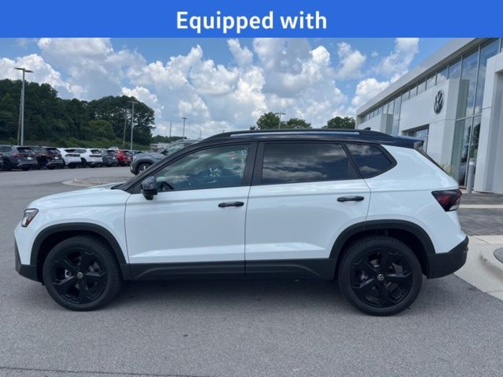 2025 Volkswagen Taos 1.5T SE AWD 8-Speed Automatic with Tiptronic 1.5L I4 Turbocharged DOHC 16V LEV3-SULEV30 174hp Pure White w/Deep Black Roof