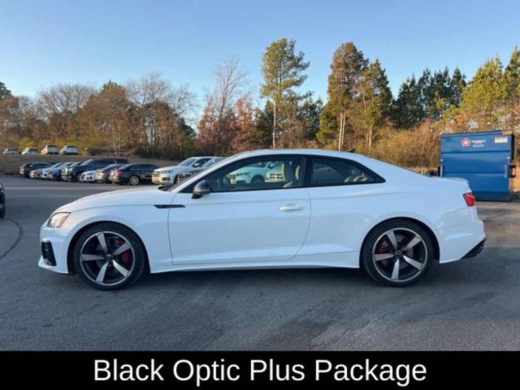 The Black Optic Plus Package enhances the A5's bold, sporty styling with exclusive design elements, including black exterior trim, dark chrome exhaust tips, and stunning 19-inch wheels. The Convenience Package further elevates your driving experience with thoughtful amenities like the power moonroof and Audi Side Assist with Pre Sense Rear.