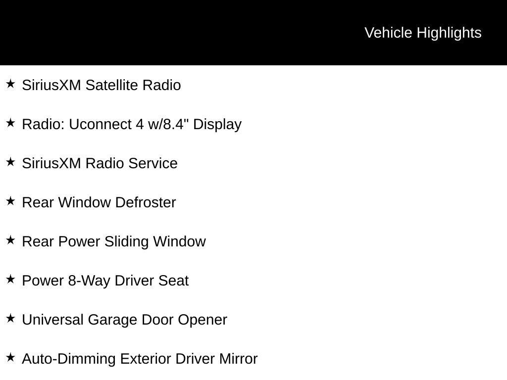- Radio: Uconnect 4 w/8.4" Display