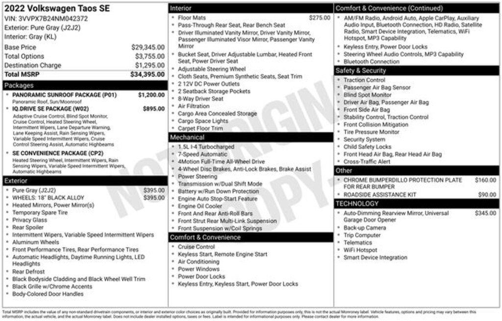 Used 2022 VolkswagenTaos 1.5T SE 4MOTION